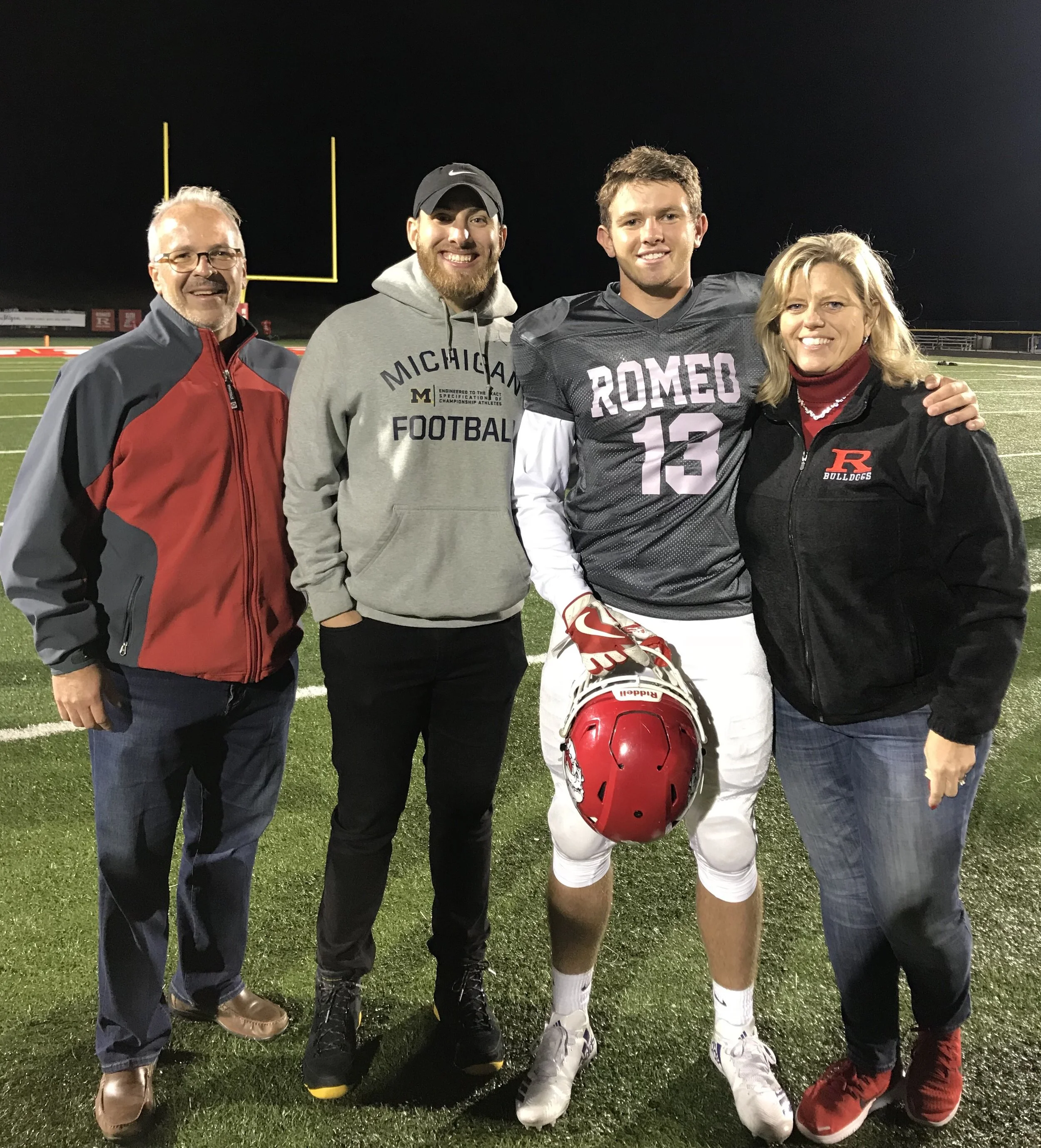 Taylor Brynaert is one of Romeo’s football coaches, Greg & Lynn Tarr’s son Gregory and Holly Shaw’s son Neil both play for the Bulldogs. Romeo beat Grosse Pointe North by a score of 55-0.